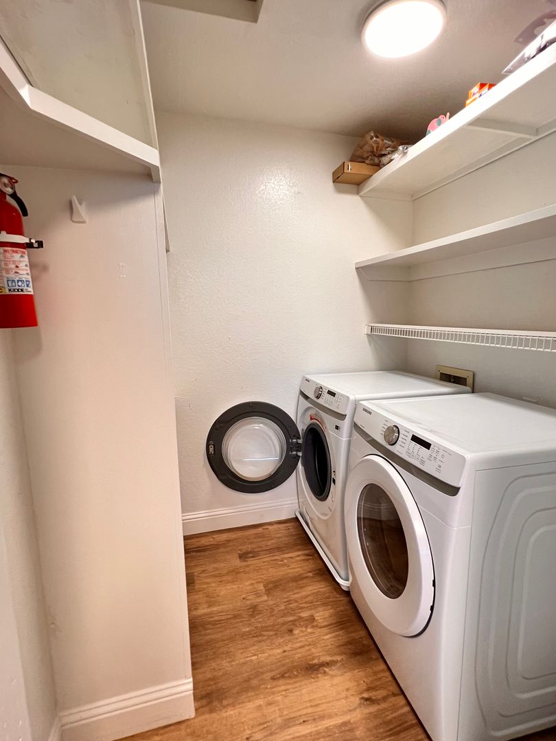 Indoor laundry area with washer and dryer included